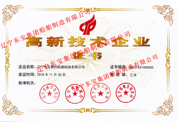 遼寧東寶集團(tuán)船舶制造有限公司《高新技術(shù)企業(yè)》證書